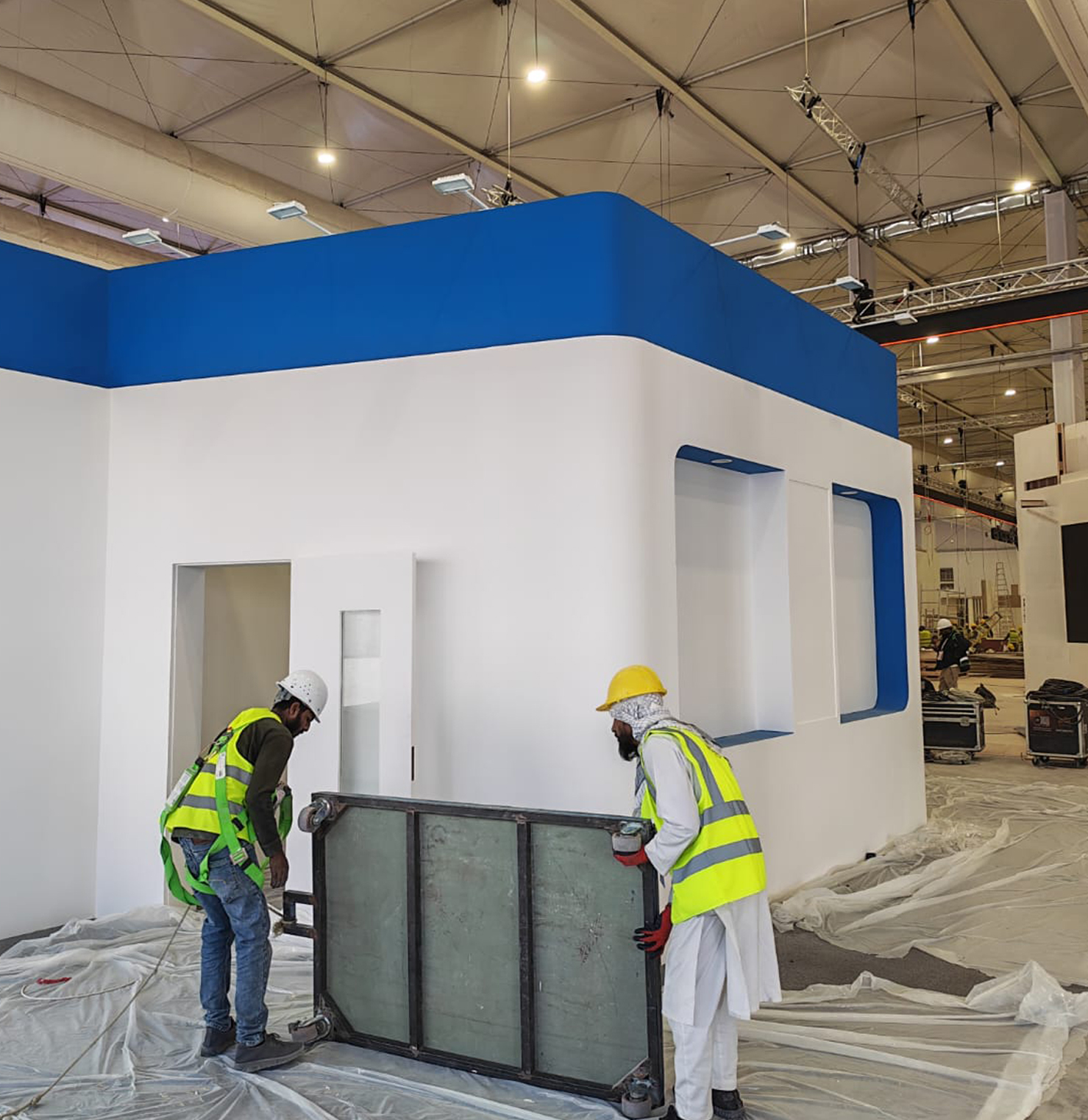- Coordinated setup within a large-scale exhibition venue