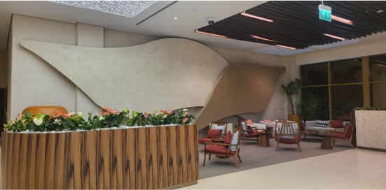 The Air Taxi Terminal interior reflects the Red Sea region’s identity through organic forms, natural tones, and refined material selection. Elite Style translated the design vision into reality through meticulous craftsmanship, precision detailing, and on-site quality control — ensuring the space delivers both aesthetic impact and functional performance.